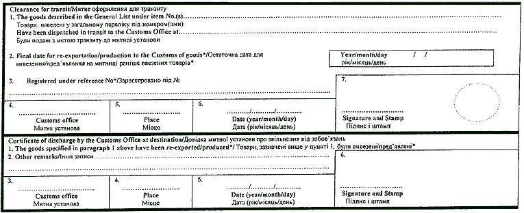 мiжнародний митний документ, який приймається як митна декларацiя i дозволяє iдентифiкувати товари (у тому числi транспортнi засоби), та мiстить мiжнародну дiйсну гарантiю для покриття ввiзного мита та податкiв;