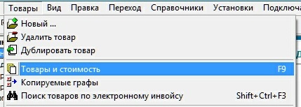 либо в ниспадающем меню выберите опцию товары и стоимость