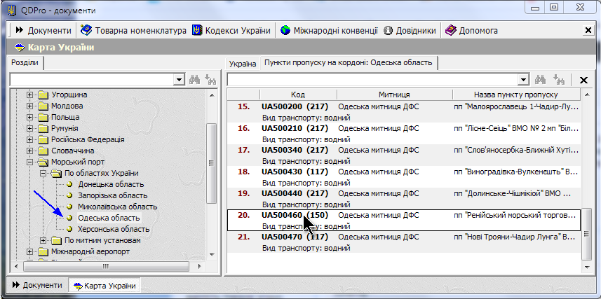 Подскажите пожалуйста ПД арахис 1202420010 25графа- 11, 26 графа-31, 29 графа написали заполнять--UA 500460. Программа выдает ошибку "переміщення товару по коду... через пп Ренійський морський торгівельний порт ВМО 1 мп Рені транспортом контейнер на морському судні заборонено! подробиці див. "Паспорт пункту пропуску". Что не так? Где смотреть паспорт пункта пропуска?