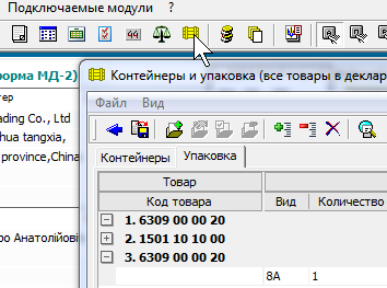 2. Кнопка "Пакування". В таблице объявляется информация по типу упаковки. В обязательном порядке необходимо заполнить колонку "Тип" и для отдельных типов выставить флаг "Маркировка" (письмо ГФСУ от 21.11.2016 N 37138/7/99-99-18-03-01-17). Колонка "Кол-во упак.", равно как и "Описание", не обязательна к заполнению. Можно перечислить все виды упаковки, используемые для оформляемого груза (палеты, деревянные ящики, картонные коробки - все, что прописано в сопроводительных документах). И даже если есть желание заполнить "Кол-во упак.", то сумма значений по этой колонка НЕ сравнивается с ячейкой до кнопки "Пакування" или с другими графами декларации.